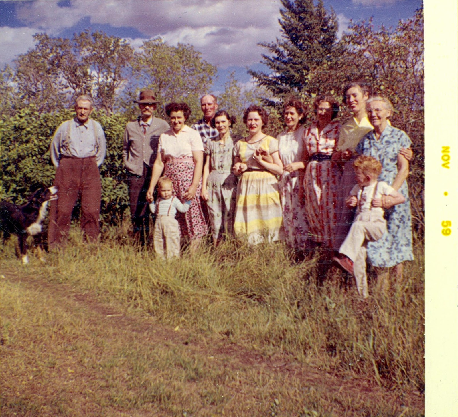 The 56 years in the title refers to this 1959 photo from one of the family albums I scanned. Only two of the subjects in the photo are still living (that I know of) , and I am one of them.