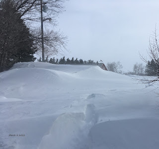 Wow, yet another winter storm has buried us in snow drifts. I've been taking pictures of the lawn ornament plow in my yard through this winter and as of today there is only a few inches of the front spindle sticking up through the snowdrift. Got to be a good three feet.